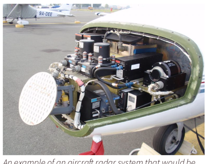 An example of an aircraft radar system – way too much for a small balloon payload. The system shown here is for a private jet. Source: Dtom (Own work) [CC BY-SA 3.0 or GFDL], via Wikimedia Commons.
