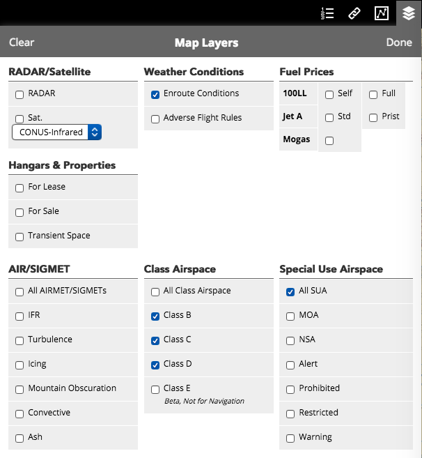 Highlight the airspace you should avoid by matching your selections on the website to the image above. Source: iFlightPlanner